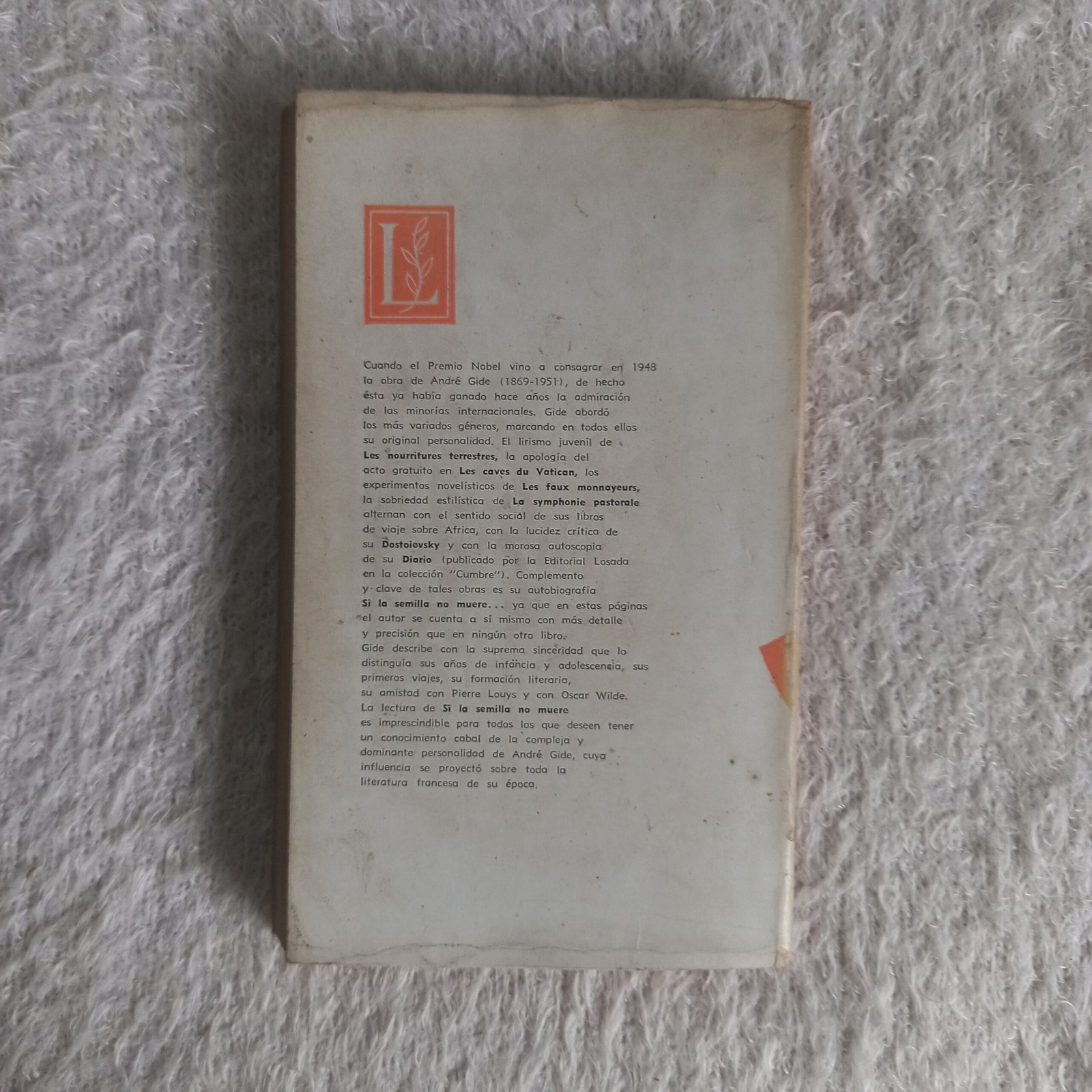 Si la semilla no muere, la narración autobiográfica de la juventud de André Gide, causó un gran escándalo, tras su publicación en 1927, debido, entre otras cosas, al reconocimiento explícito que el autor hace en ella de su homosexualidad. Como quien se impone una penitencia, el Premio Nobel de 1947 escenifica, mediante un esfuerzo de sinceridad no exento de dolor, lo que fue el conflicto moral de su vida adolescente, desgarrada entre una obsesión puritana y los instintos sexuales.